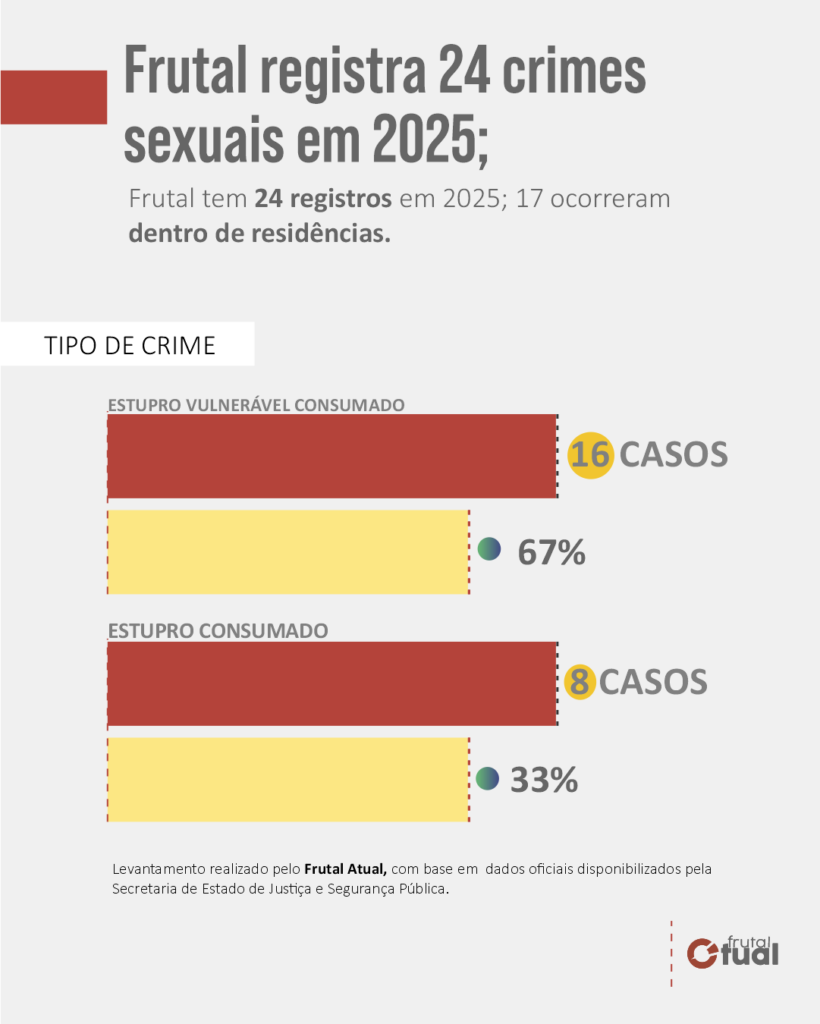 Frutal registra 24 crimes sexuais em 2025; 66,7% envolvem estupro de vulnerável