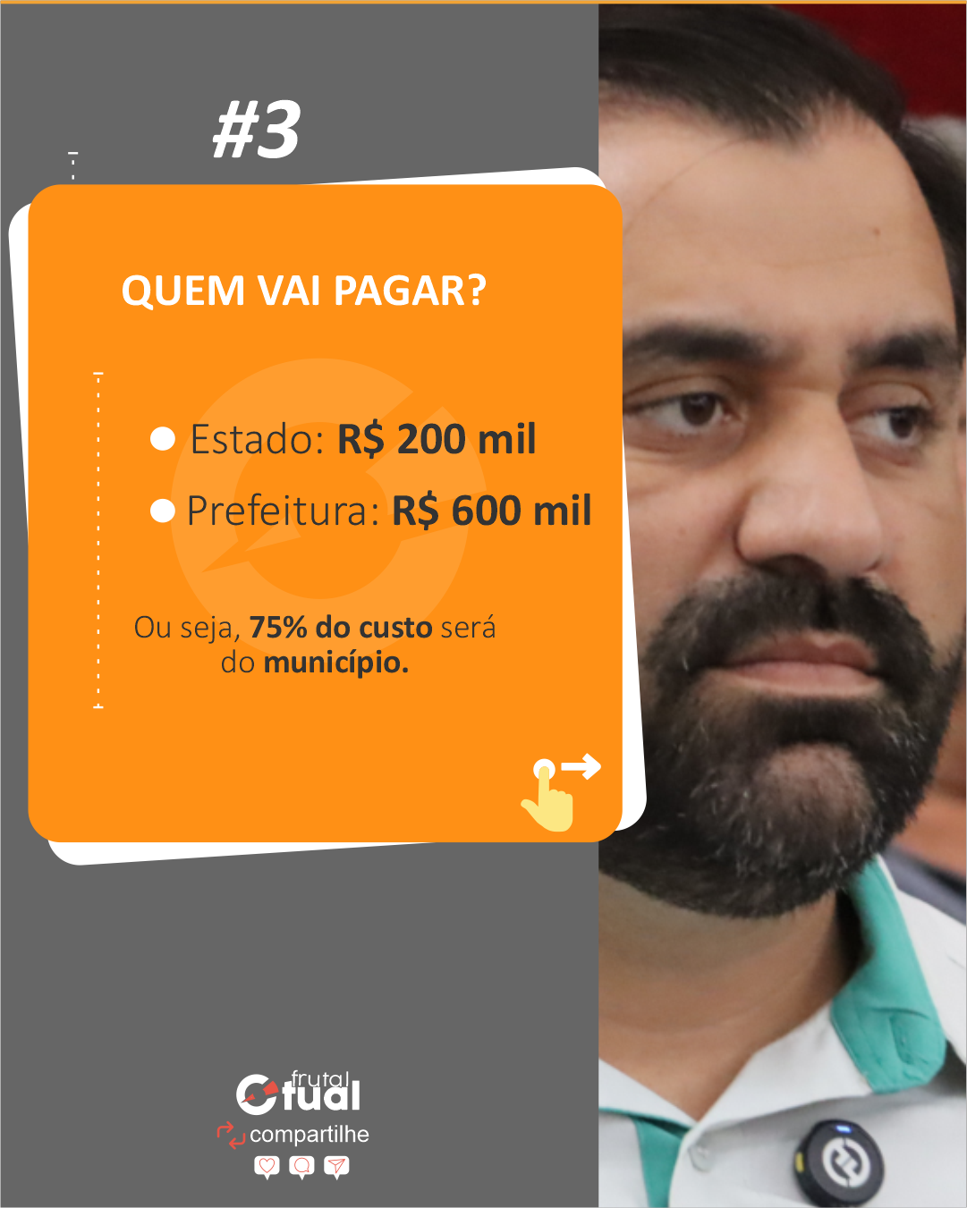De acordo com o prefeito, o investimento total para implantação da unidade será de aproximadamente R$ 800 mil. Desse valor, cerca de R$ 200 mil serão repassados pelo Estado, enquanto a Prefeitura ficará responsável por R$ 600 mil — o equivalente a 75% do custo.